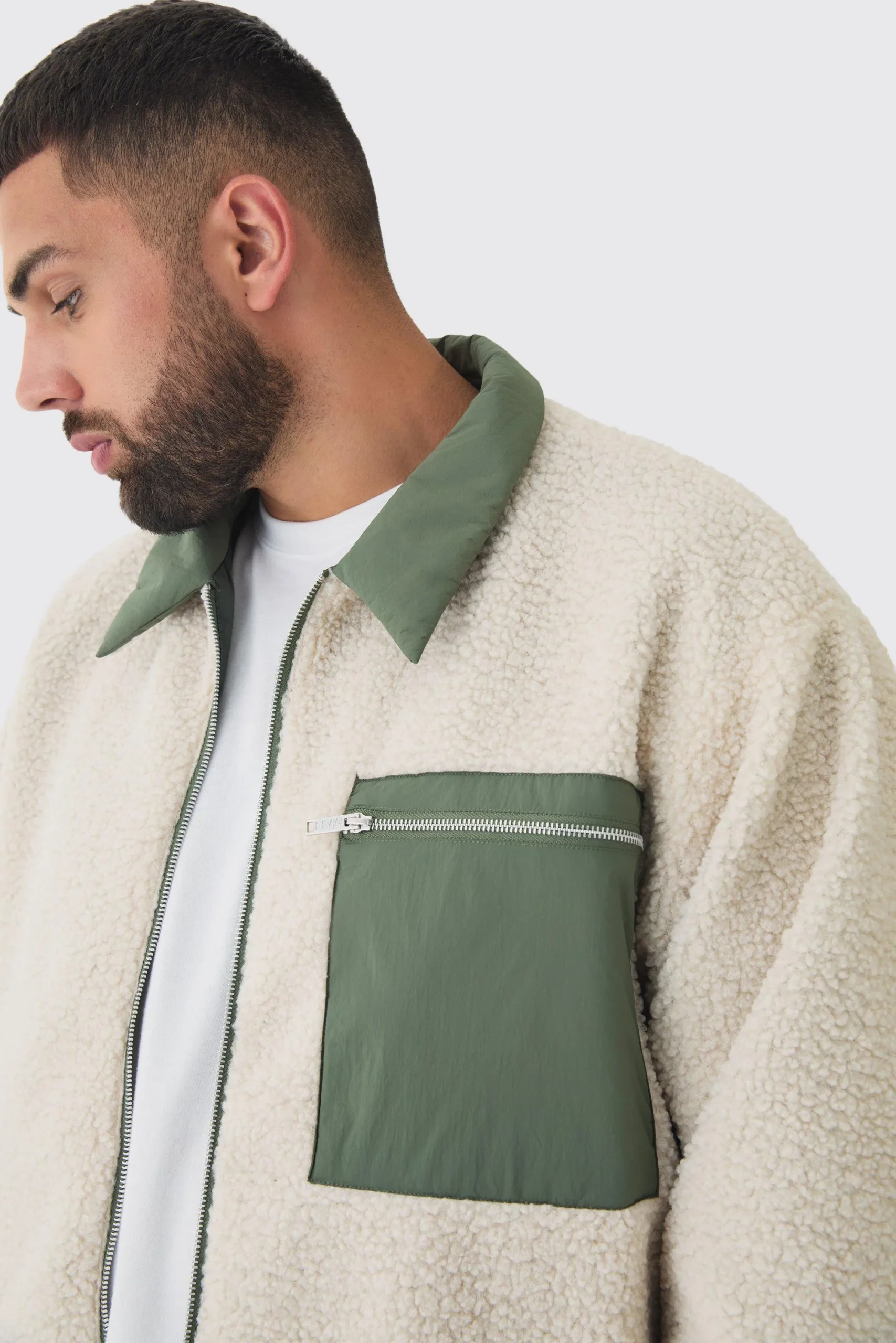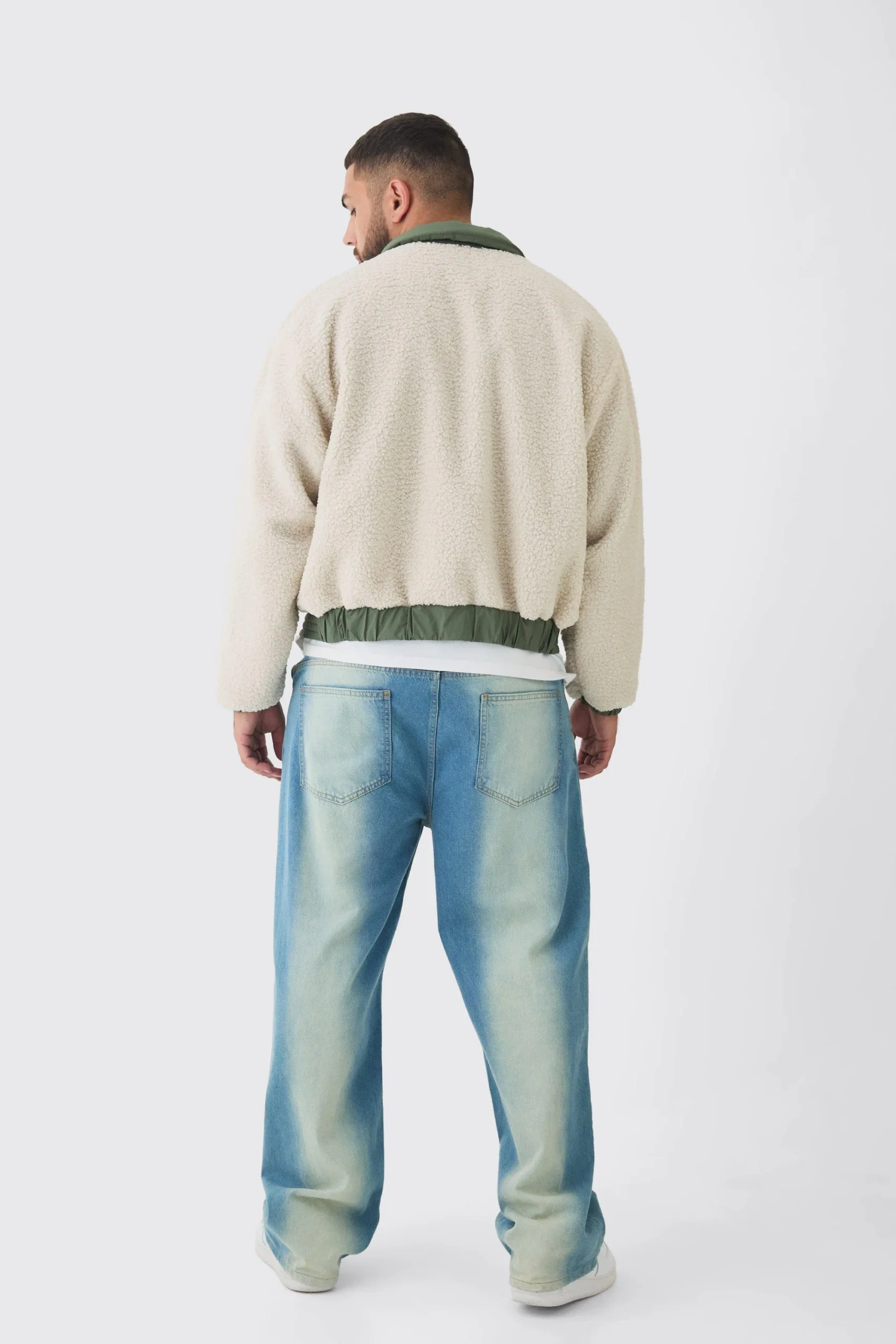 Plus Boxy Polar Fleece & Nylon Collared Bomber Jacket — Premium Streetwear for Your Brand